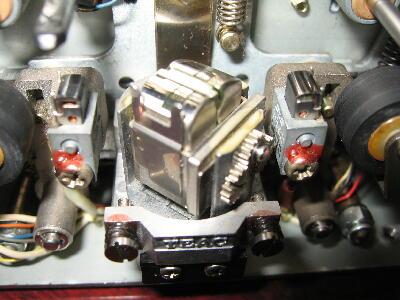 かなり拘りの3ヘッド部 ヘッド回転部ストッパ位置決めの当たりには硬そうなセラミックが使われている