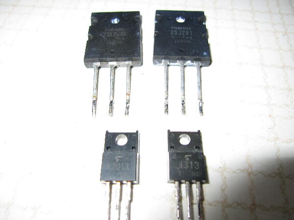 電源を入れるとH/Oの表示通り音が出ない SP接続リレーの動作音がしないのでファイナルFETを調べるとLchが+電源程が出ている コンプリFET 2SJ201 2SK1530の各ドレイン ソース間がショート状態でこのショートに耐え切れずソース抵抗0.22Ωが焼損 通電時電源ヒューズが切れずFETが死亡した様だ この死亡したFETはゲート ドレイン ソース間全てに導通がありこの為前段ドライブFET 2SK2013 2SJ313も劣化していた