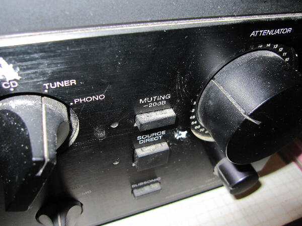 アッテネータツマミの調子が悪いとはボリュウムのストッパが効かず360°回転する事だった