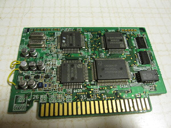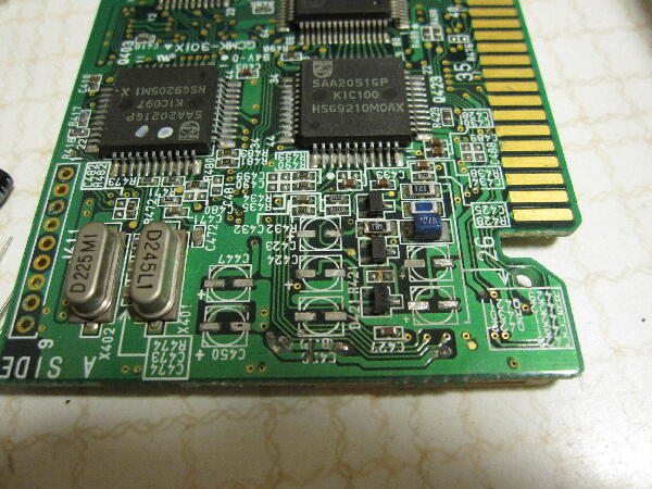 デジタル部?基板のケミコンが液漏れしていてパターンがかなり侵食されている カードエッジ金メッキも緑青に侵されている