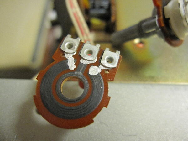 右端 抵抗体と端子間に導通がない コンダクトペンで補修