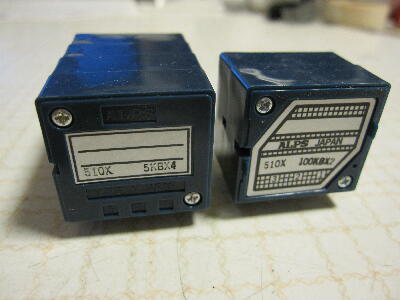 だめもとで無難な4連 5KB と2連 100KB センタタップ付きのボリュウムを購入して各々ばらして6連に組み替えてみる事にした