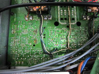 ボリュムは交換されているようで基板付けタイプのアルプスRK27型となっている 細いリードに電線をハンダ付けしてあるので無理な力が掛かると折れそう 交換した人には悪いが樹脂カバーを溶かしハンダ付けは綺麗ではないのでプロでは無さそう