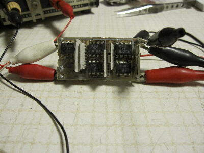 オペアンプの電源ピンが複数個 錆びている 充填材との関係で電蝕でも起きたのだろうか?これでオペアンプ内部が犯されたと思われる