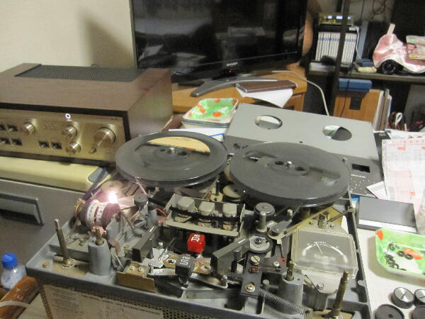 本機の切り替えはベルトをレバーで移動させ掛け替える機械式となっている 19cm/sから9.5cm/sへは出来るがその逆はベルトの劣化からか乗り移れない 本機のベルトは厚手の特殊な物で手に入りそうにないのでプーリを少し下げ乗り移るよう調整