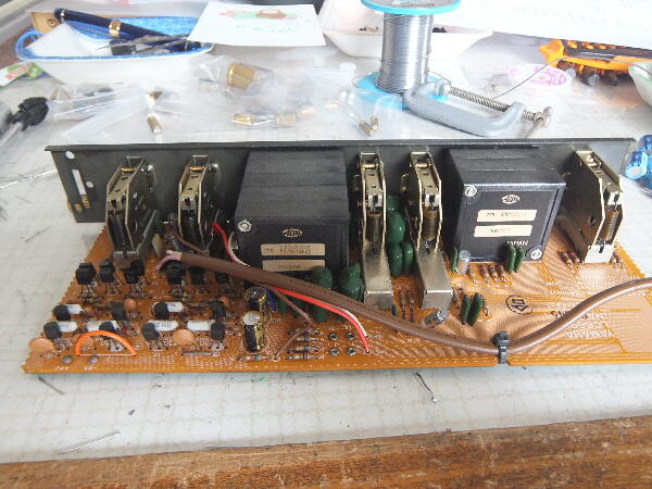 スイッチの分解掃除は当然 ケミコンの交換、音に影響しそうな箇所のフィルムコンはポリプロプレンに交換してみる 基板のフラックスは埃が溜まり汚れていたので之も序に洗浄