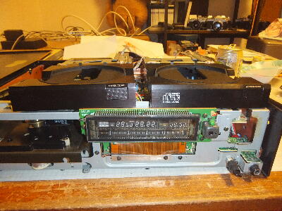 中を見てみるとボリュウムなど弄られた跡は無いように見える 電源を入れて試すとディスクは回転して読み込もうとしているが読めずにいる