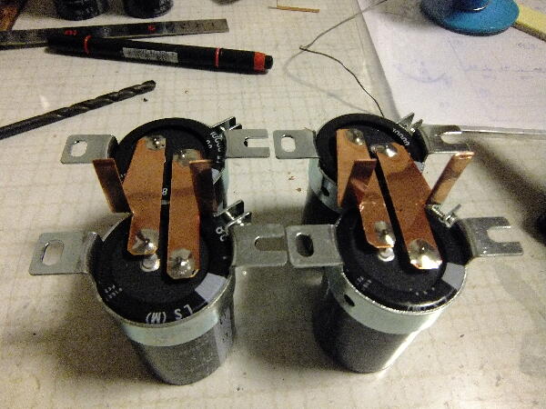 重い腰を上げ銅板の加工を始める ケミコンが在庫切れで入荷が遅れたが11/1に手に入ったので1号機と同じ様に10000μ/80Vを2パラにしてAssyを組み立て 加工したアクリルベースに組み付け