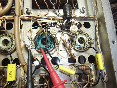 プレート電流を測定出来るようカソードに古い10ΩF級があったので足付きラグで中継