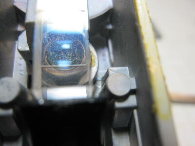 プリズムは接着剤で固定されているので剥がして掃除したいところだが光学系が狂うと厄介なので何とか外さないで掃除する方法を考える