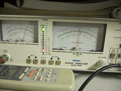 配線は確認したが念のためスライダックで徐々にAC電圧を上げ 動作を始めるか確認 波形が出てきたので問題無さそう ふらついていたメータは安定してボリュウムのレベル変化もスムースになった