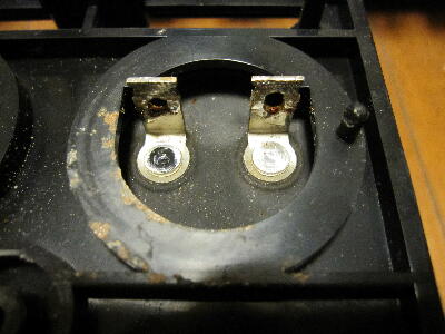 ケミコンを外すにはケミコン足に通された太いメッキ線を抜く必要がある がっちりハンダ付けされているので外すのは大変