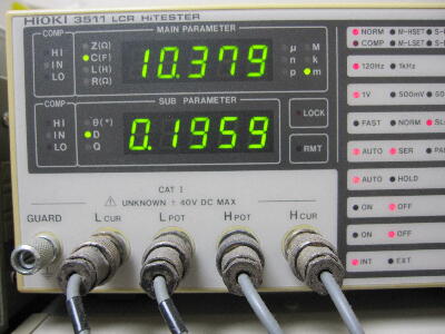 液漏れしたケミコンをLCRメータで測定してみた 容量は見たところ12000μは10000μ程を示すが表示がバラつき劣化している