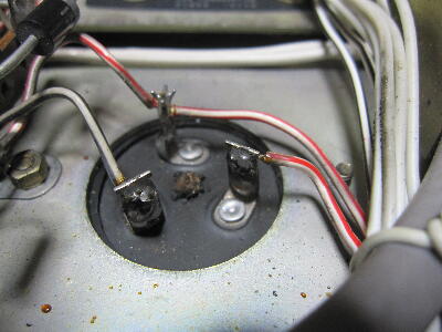 トランスの配線の取り外し 電線被覆の焦げがあり 一度交換されていそう 隣のトランス配線には外した痕跡はない