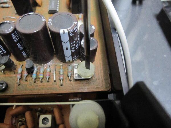 フロントエンド内のIFコアを調整しようとして 先端がセラミックの調整棒を入れると シールドケースの穴に調整棒が入りきらず コアに届かない