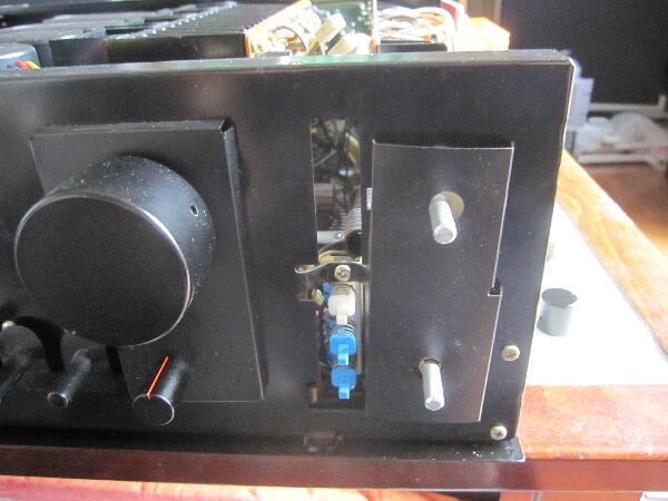 イコライザ基板にセレクタSWが乗っているので SWシャフトを外す必要がある 表パネルを外さないとシャフトが抜けないので面倒