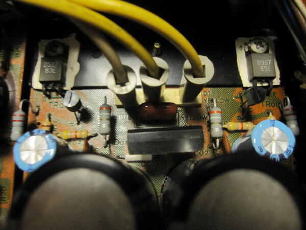 イコライザの電源 ±40V電源基板のTO-220 トランジスタのリードは黒くなっていた
