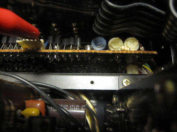 部品面のトランジスタのリードは黒くなっておらずノイズの原因らしき箇所は無さそう