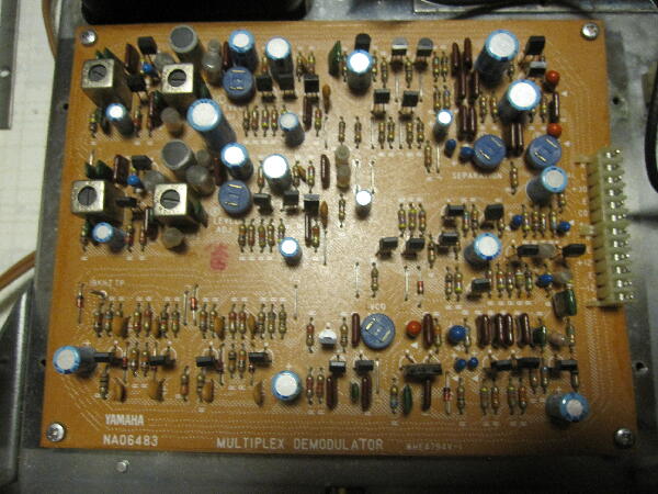 MPX基板の信号を追っていくと 検波後のコンポジット信号は左右MPX復調アンプまでは来ている