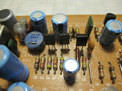 2SC485が不良と思われ 交換しようとハンダを吸いとると エミッタ リードが殆どパターン面に出てなかった