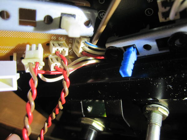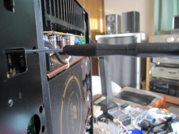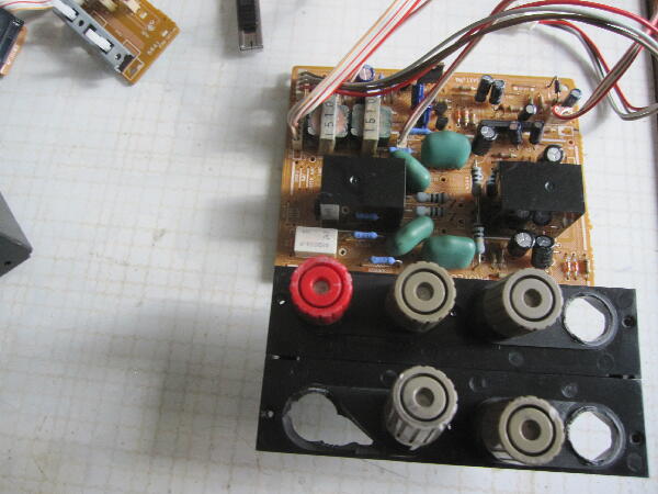SP端子が割れて プロテクト基板も割れていたので 部品取り機 AU-907i のSP端子 プロテクト基板を移植したとの事