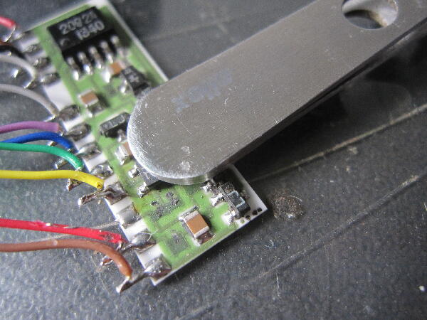 ハイブリットICに問題が在った場合 又外す事はまずいので CP602のラウンド以外の箇所に仮配線で接続して基板に実装しない状態で動作確認