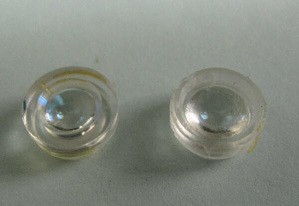 接着剤が柔らかくなって何とかレンズが外れた ルーペでレンズを拡大して見ると傷が多くついて 周辺が曇っている