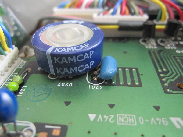 電源回りを調べている時 CD Assy の下にある基板のメモリバックアップ用スーパキャパシタが目についた