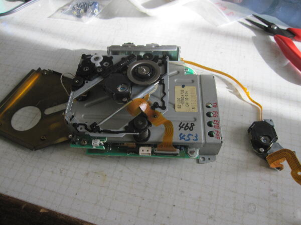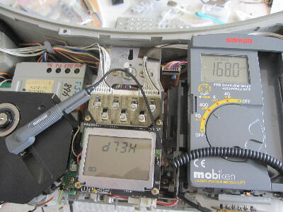 レンズを交換したピックアップはディスク回転が調整で直ぐ 止まらない様にはなったが 波形はボケて TOCは読めない レーザが寿命の時の症状 レーザ出力も上がらないのでやはり寿命の様だ 残念 ピックアップ交換しか手立ては無くなった ピックアップはプレミヤなのか