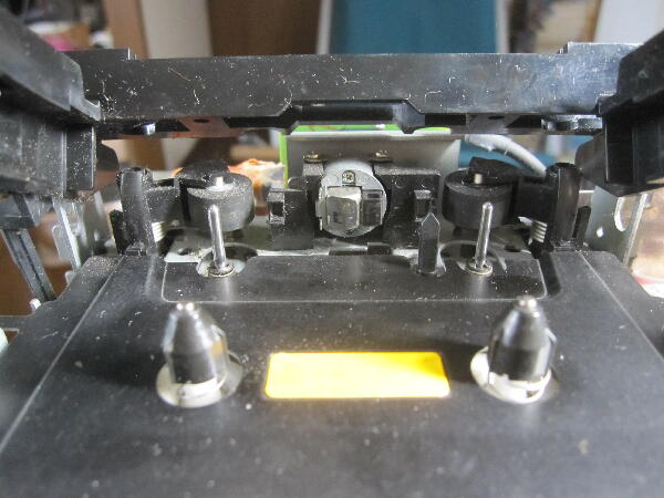 カセットのキャプスタン ピンチローラ ヘッド はテープ磁性体で汚れていたので掃除