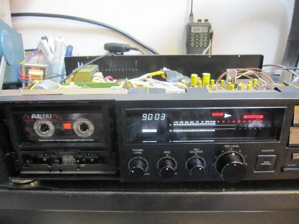 テストテープでは録音時間が短いので 我が家のTC-K555ESA で60分テープに片道 1KHzを録音して本機で再生してみる