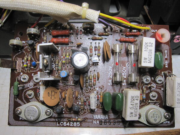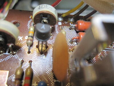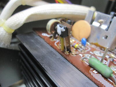 パワーアンプ基板にもリードが黒くなったトランジスタが何個かある