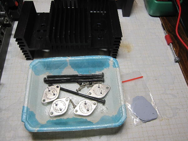 水洗いした放熱器にパワーTrを取り付け