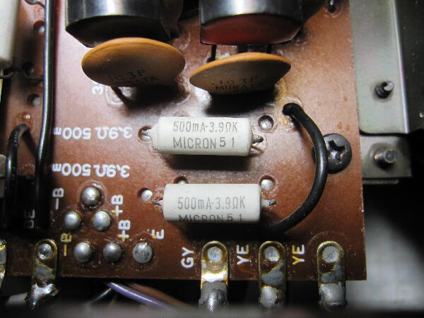 調べると3.9Ωと22Ωのヒューズ抵抗が断線している