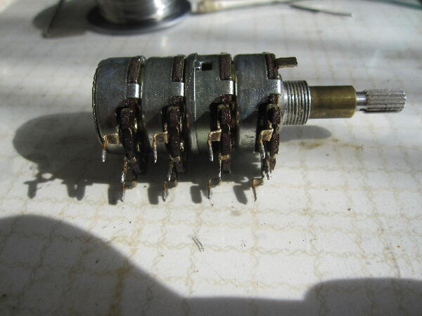 問題のバランスVRはシャフト側から2段目のベーク板の抵抗体とカシメられた足との導通が無い この足がGND側なので症状と合う