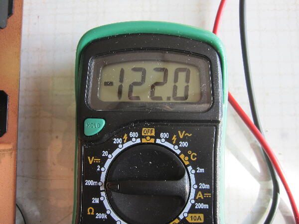 電源投入時は-120mV以上あり 5分経って-56mV 15分以上経ってようやく10mV以内になる