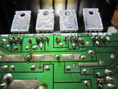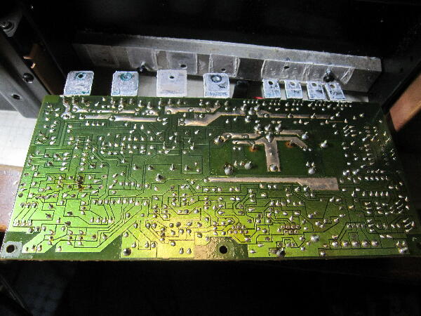 基板を外した時A級アンプ側の出力段のパワートランジスタ TO-220の足はハンダクラックが見られる