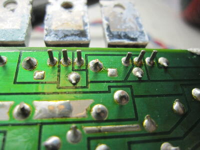 やはりハンダクラックがパワートランジスタ以外にも起きていたのでハンダを盛っておく