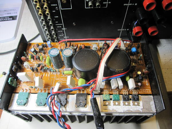 パワーアンプのLchは放熱器を少し浮かせば基板は外せるので基板の2SK389を交換