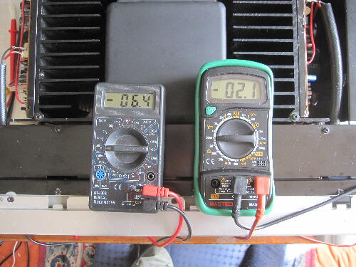 バイアス調整 十分暖まった後にB級 12mV A級 150mV 位に調整 之で規定の80 % 相当